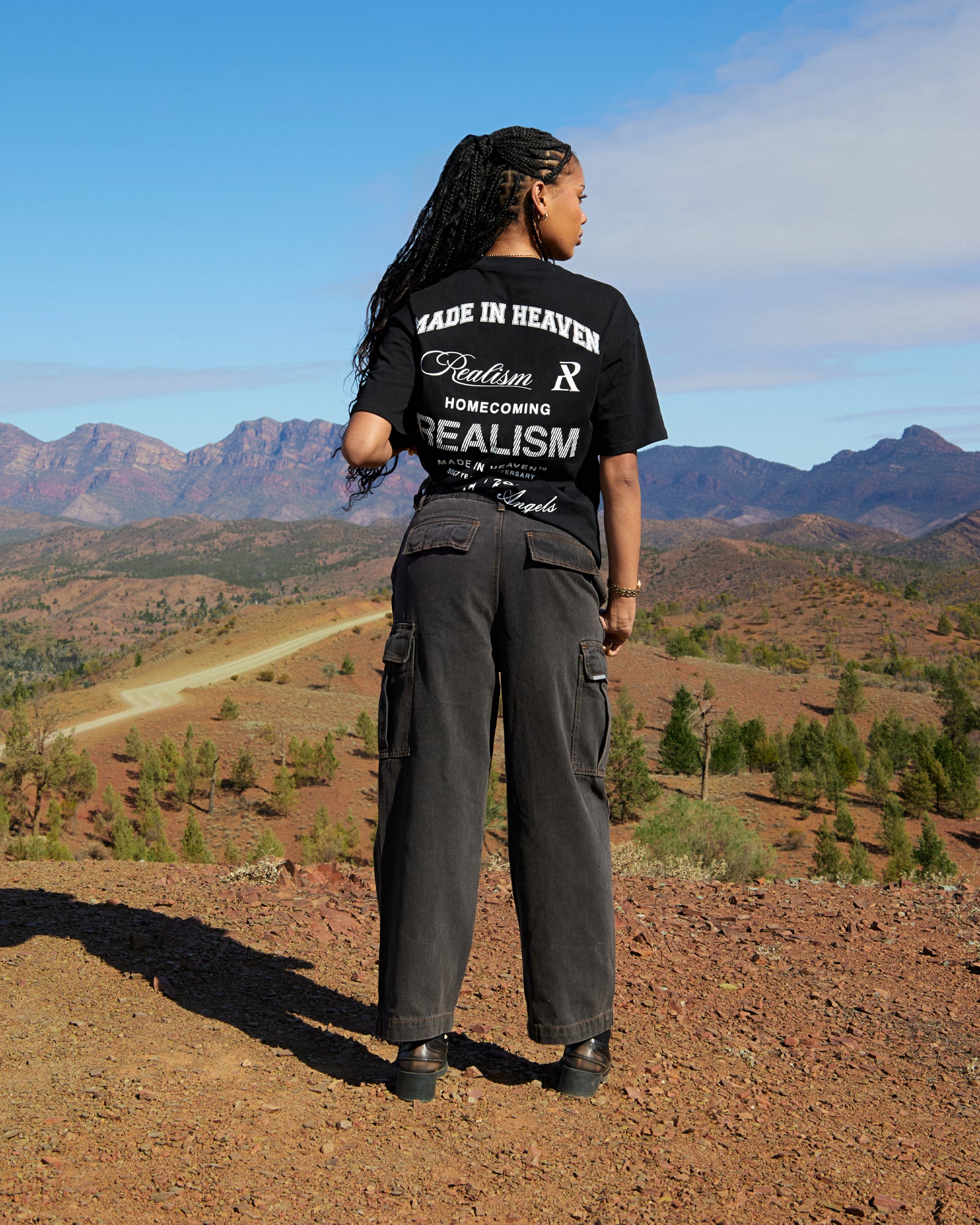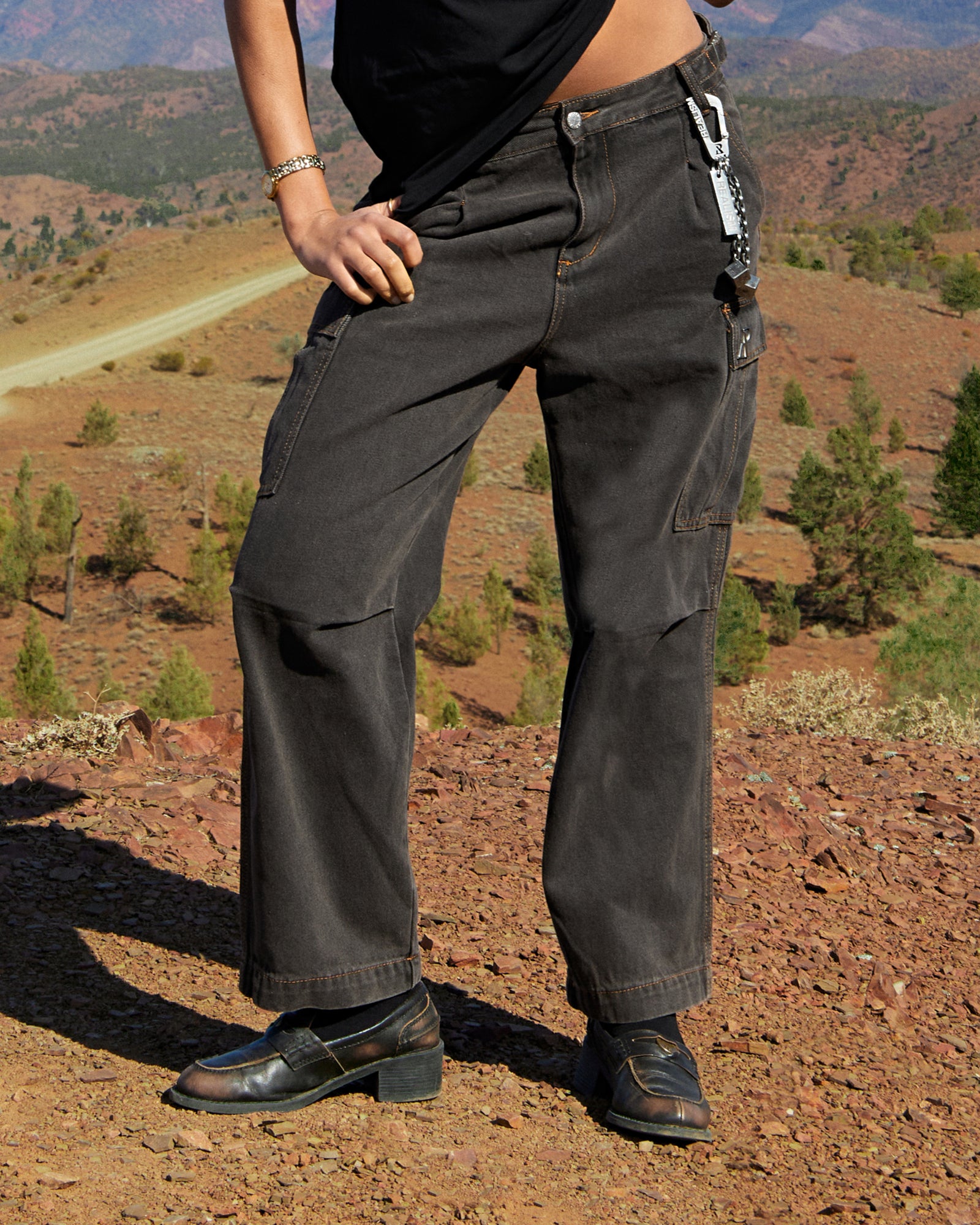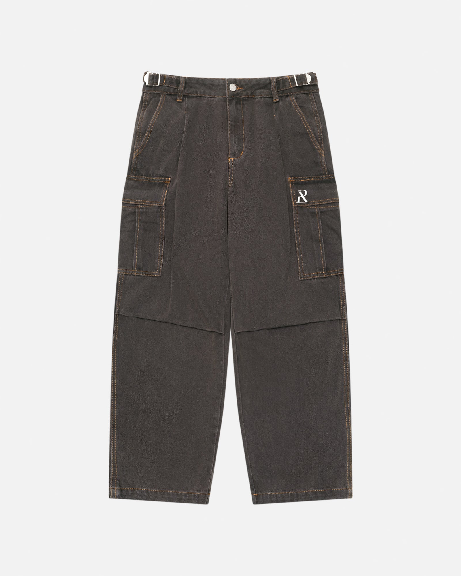 Add functionality and utility to your fit with the Realism Alloy Cargo. Made with a dense denim and adjustable waist tabs, you can be assured that these pants are ready for whatever the day brings. Custom metal embellishments such as an "R" emblem and "Realism" bring together the whole concept of elevated workwear.