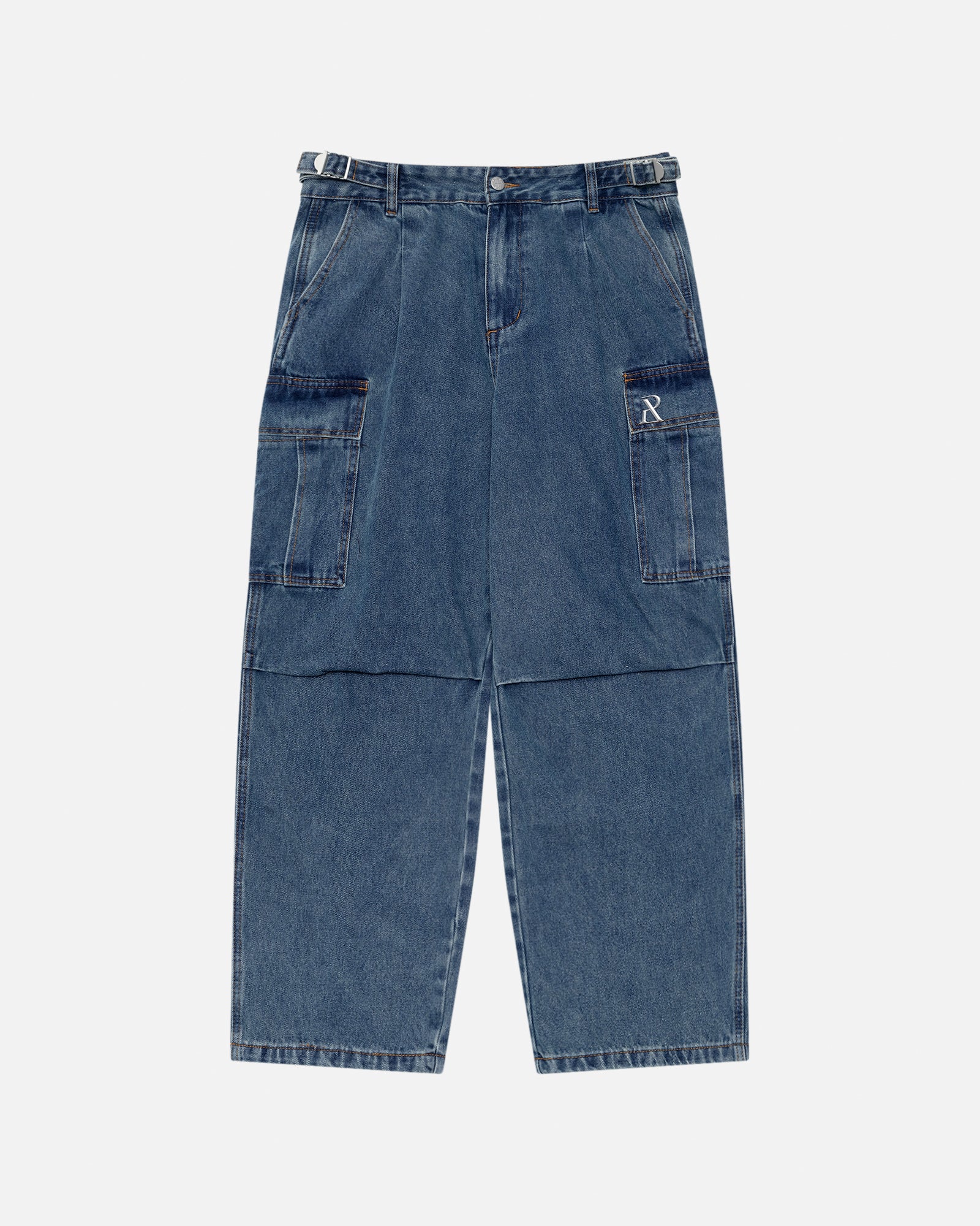 Add functionality and utility to your fit with the Realism Alloy Cargo. Made with a dense denim and adjustable waist tabs, you can be assured that these pants are ready for whatever the day brings. Custom metal embellishments such as an "R" emblem and "Realism" bring together the whole concept of elevated workwear.