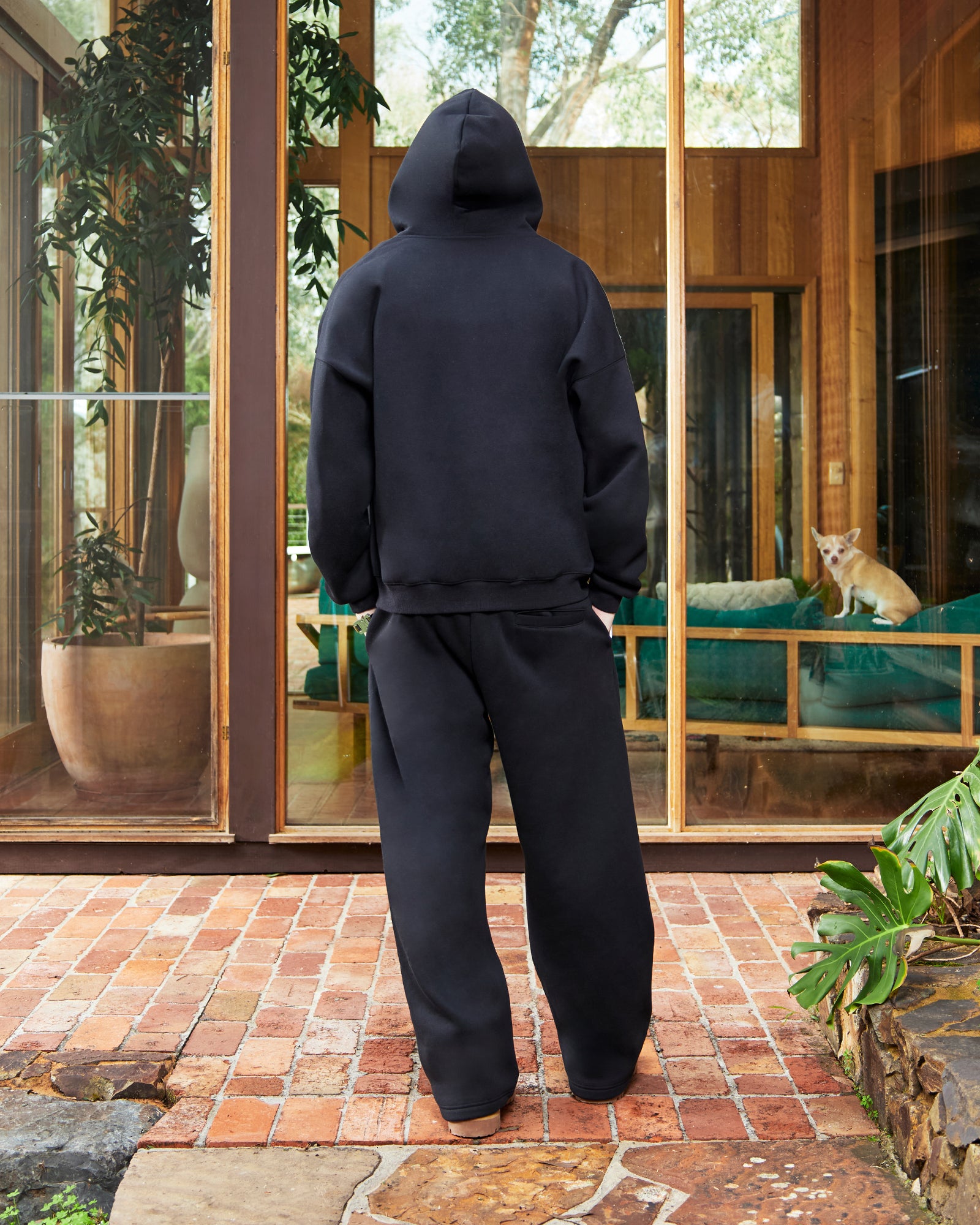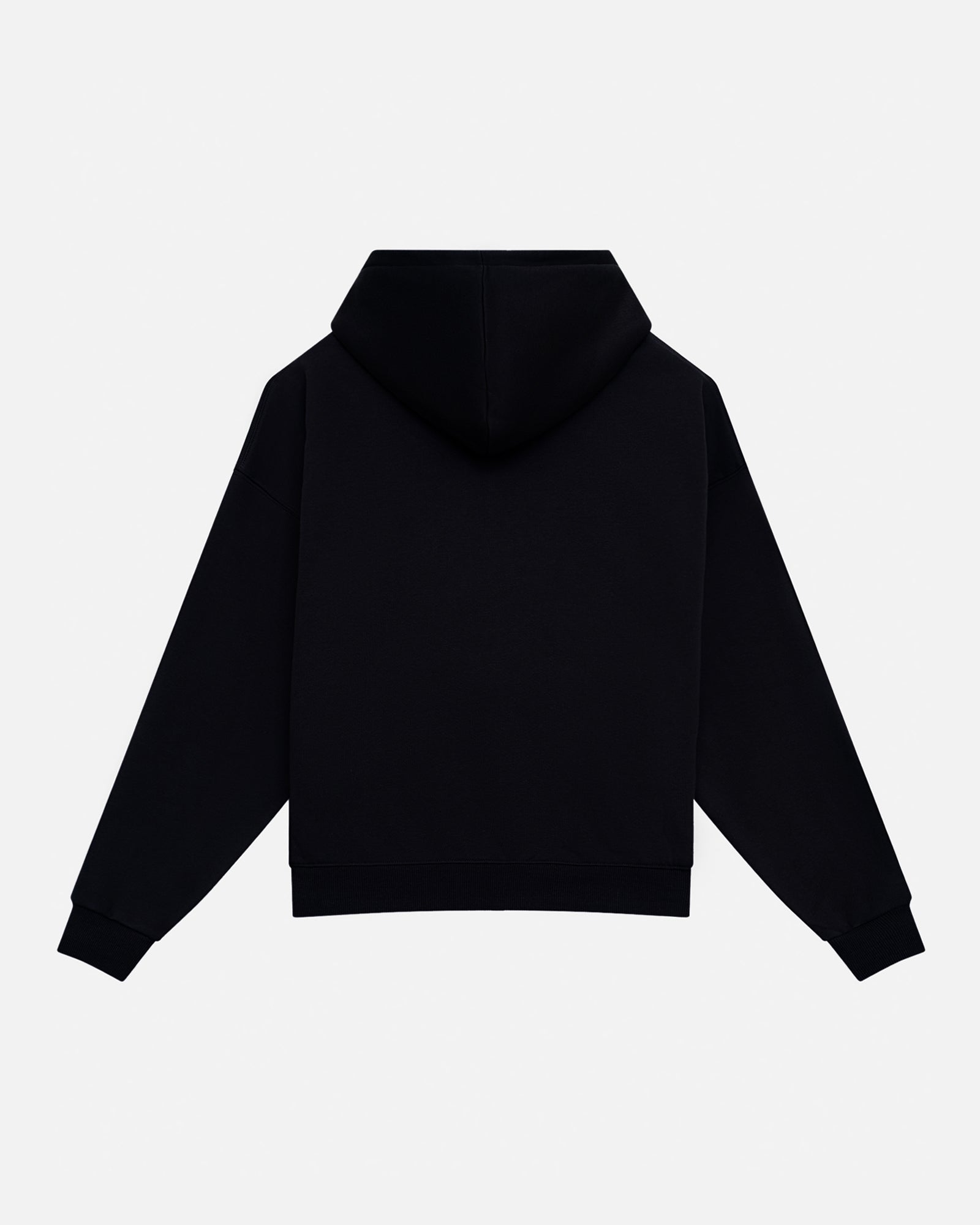 Crafted for everyday essentials, the Core Basics Zip Hoodie in Black is a refined take on minimal streetwear. True to size with a boxy fit, this piece is built using our signature 350gsm fleece. Soft, structured, and made for daily comfort. It features a custom metal logo clamp on the kangaroo pocket and a clean, logo-free finish throughout for an understated look.