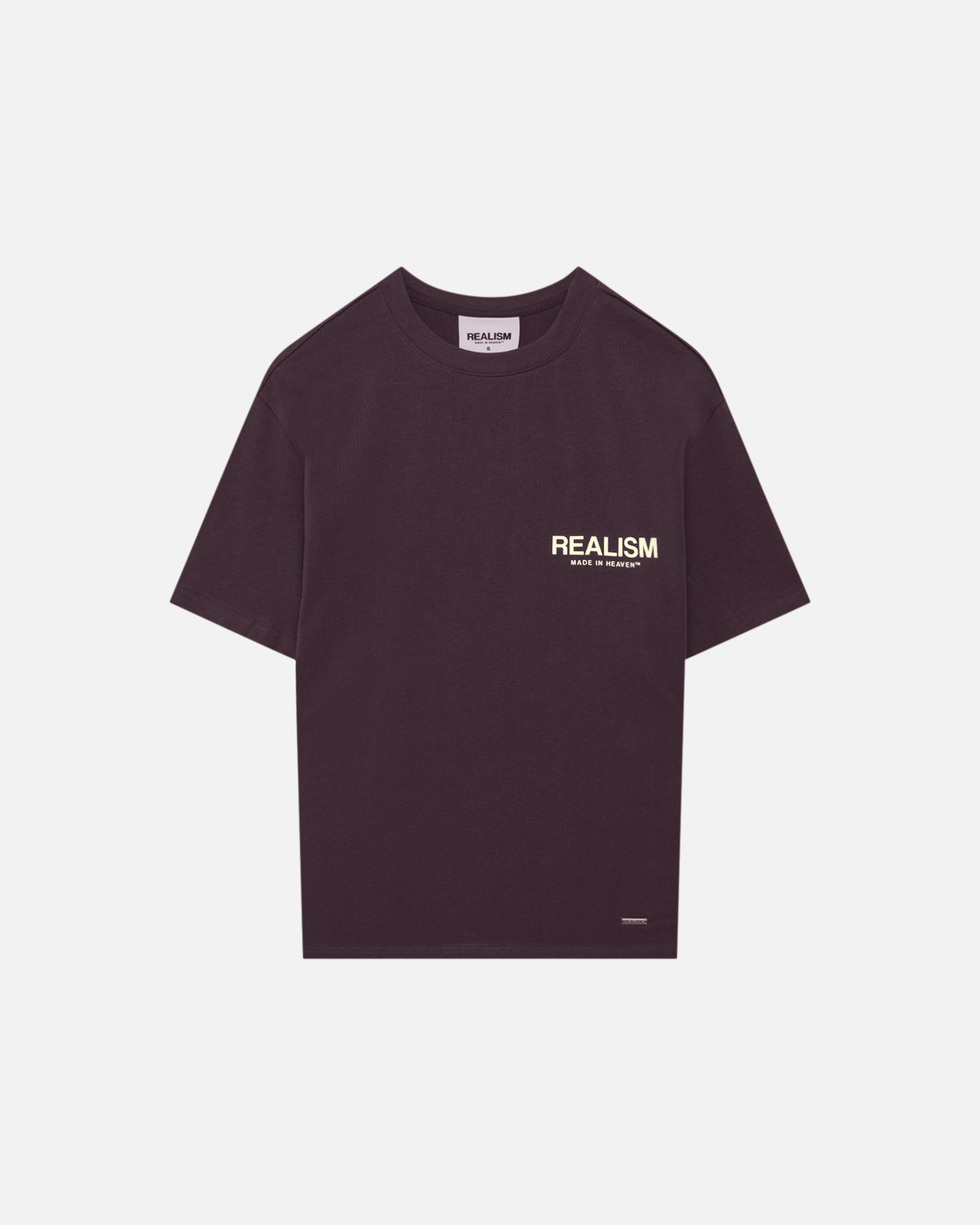 A summer-ready form of the classic Heaven Logo Hoodie. The Heaven Logo Tee features flock applique logo adornments on the chest and back with a custom metal REALISM plaquette on the bottom hem to bring together the whole design. The perfect way to start any fit.
