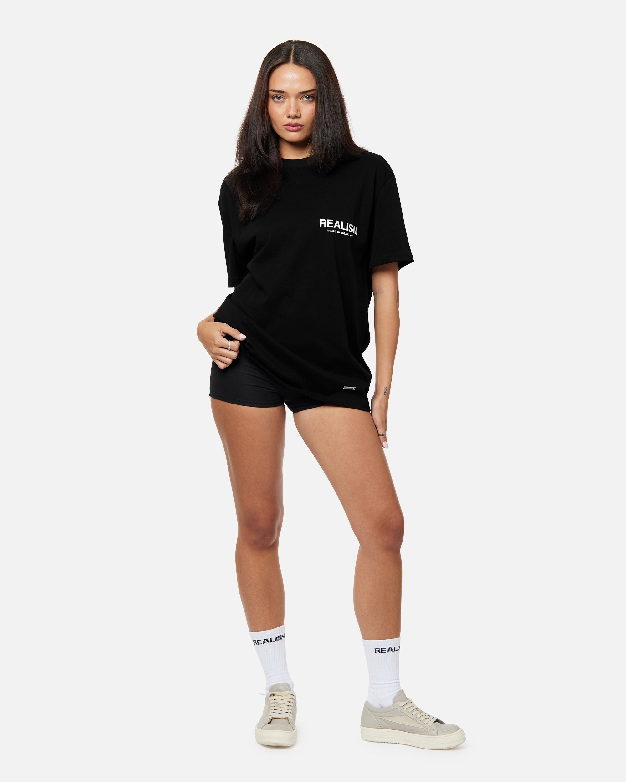 The Unisex Heaven Logo Tee from REALISM features smooth 3M reflective logo adornments on the chest and back, top off with a perfect oversize fit to match any cargos or jeans and sneakers.