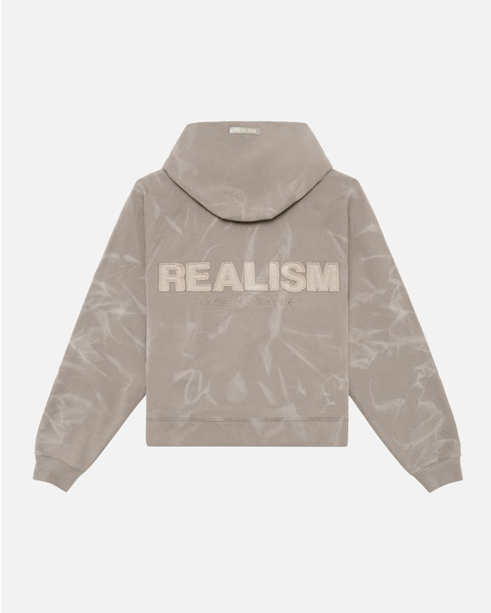 The Legacy Series represents the next evolution of Realism's design identity. Made with an acid washed French Terry in a Washed Stone guise. This hoodie features distressed patch work including the “R” on chest and “REALISM” on back. Custom metal accents and a silicon applique logo on the hood help bring together the design.