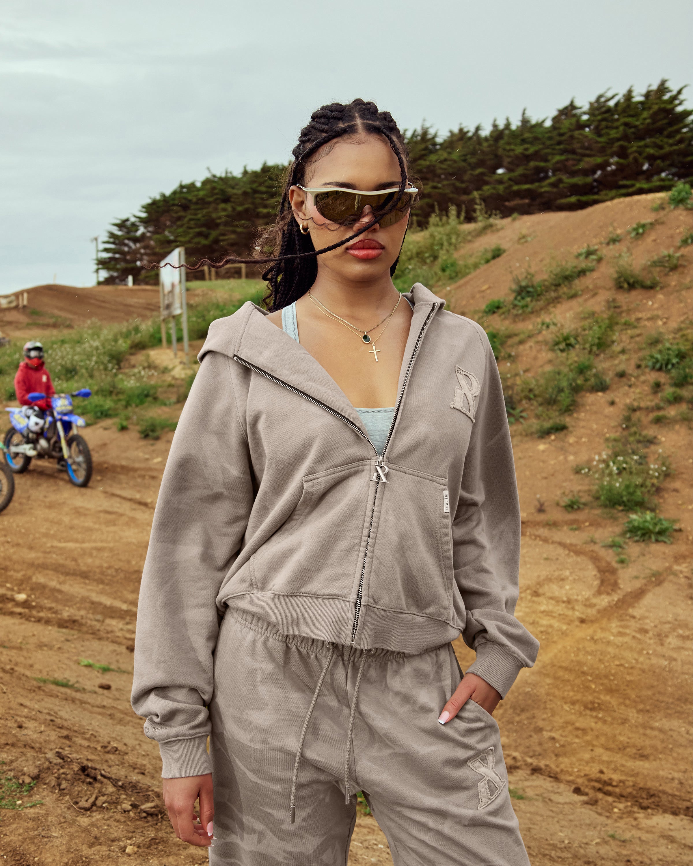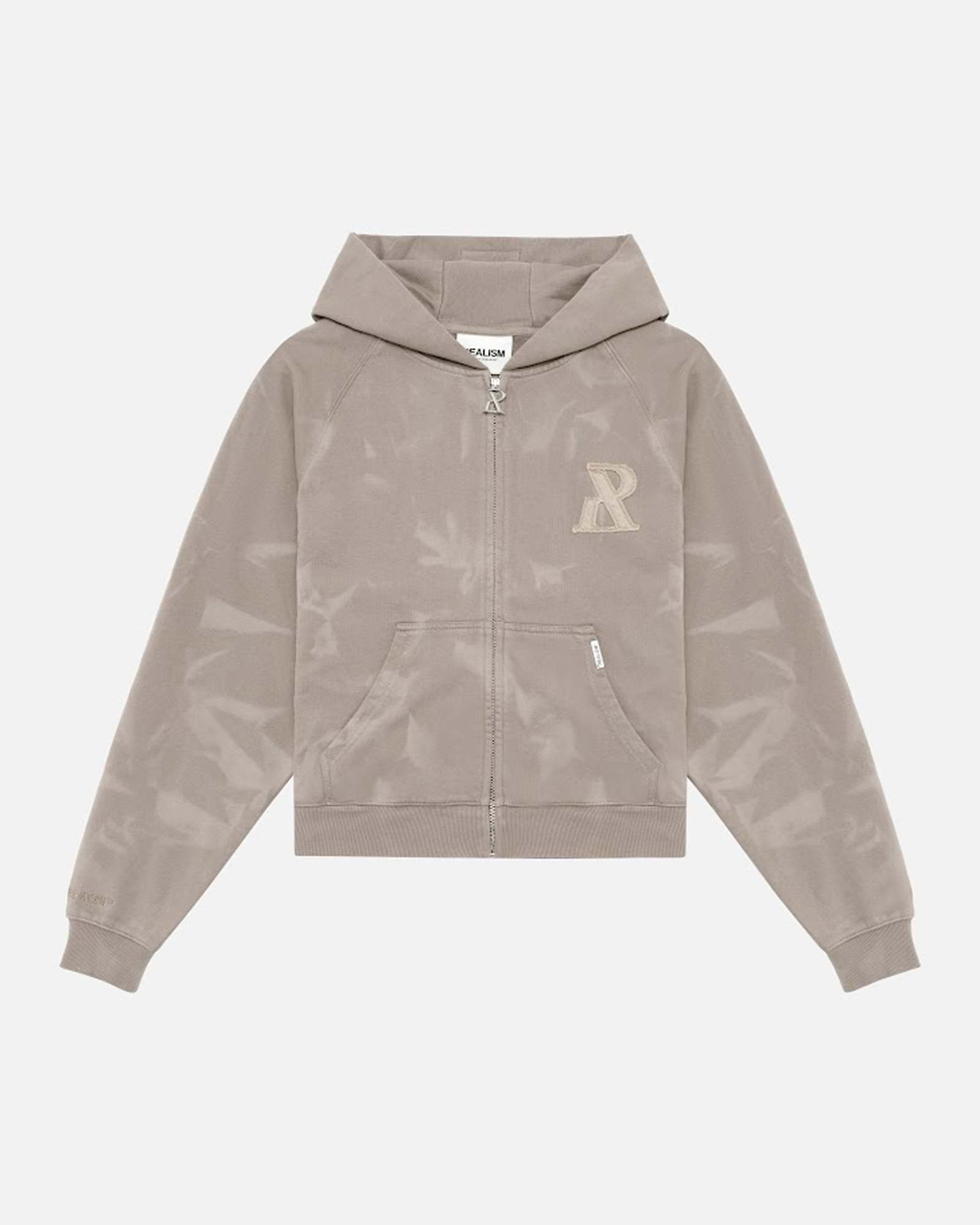 The Legacy Series represents the next evolution of Realism's design identity. Made with an acid washed French Terry in a Washed Stone guise. This zip hoodie features distressed patch work including the “R” on chest and “REALISM” on back. Custom metal accents and a silicon applique logo on the hood help bring together the design.