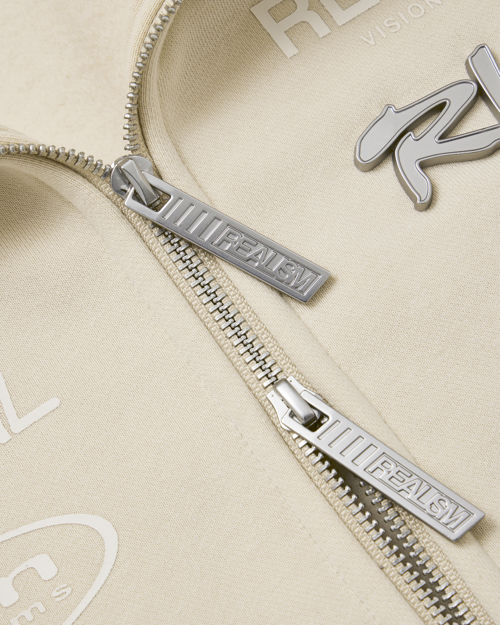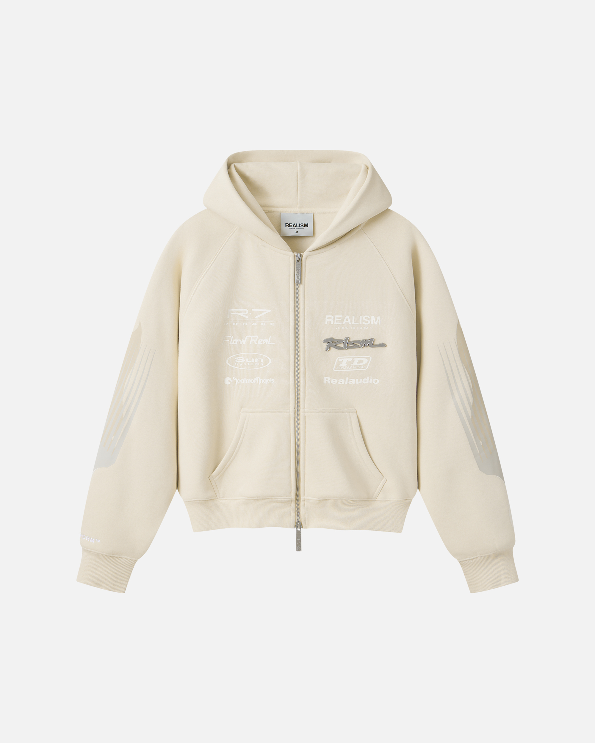 The R Speed Zip Hoodie in Washed Taupe is part of our Racer Collection, designed with a refined, tonal approach to motorsport graphics. Featuring layered REALISM branding across the front and back, this piece is balanced with skid mark graphics running down both sleeves, referencing motion and movement. The washed taupe base keeps it clean and minimal, while a mix of embroidery and matte prints adds depth. Finished with custom REALISM metal zip hardware and signature detailing.