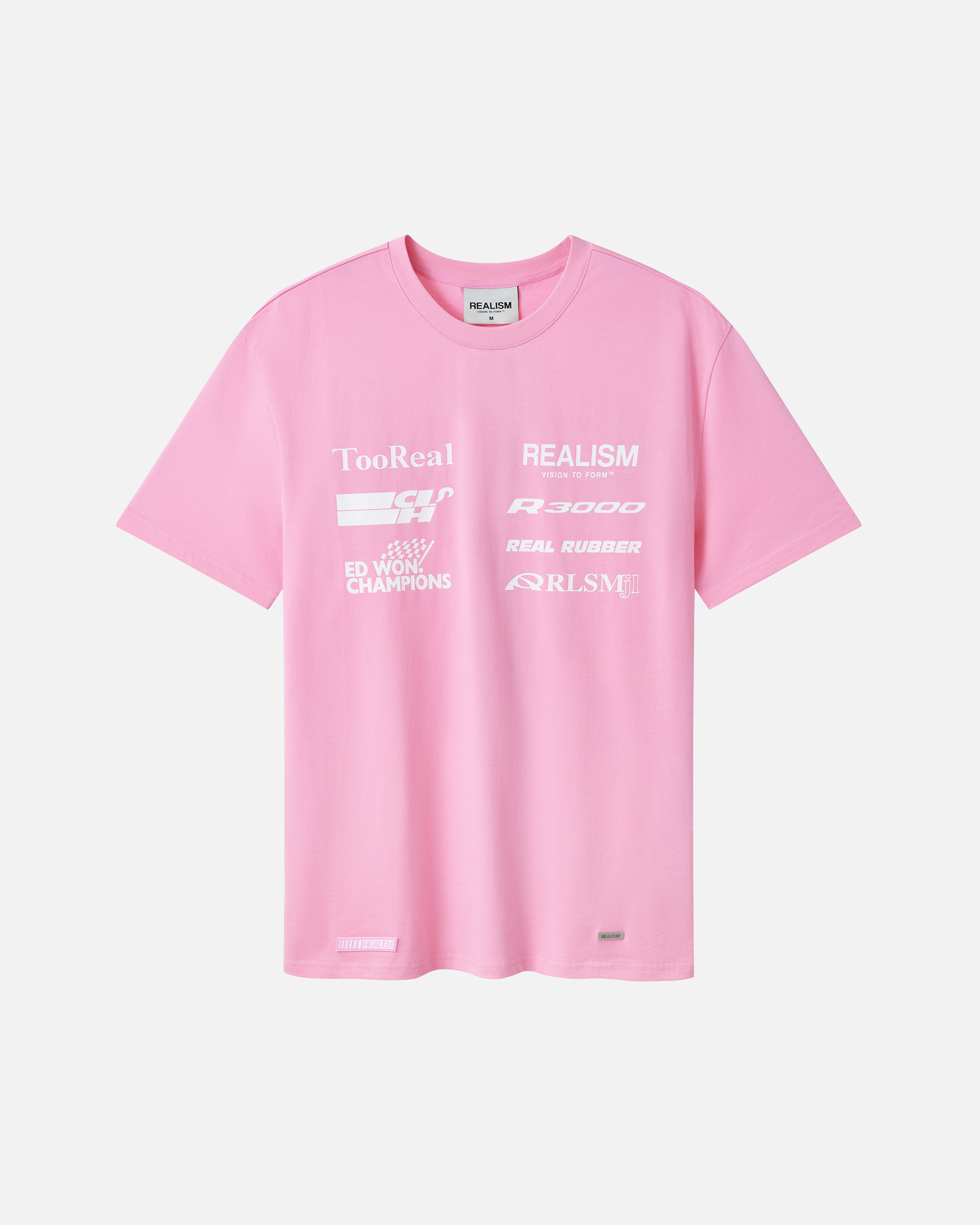 The R3000 Tee in Candy Pink is part of our Racer Collection, built around motorsport-inspired graphics and layered branding. Featuring a mix of front and back graphic placements, this piece combines bold text elements with softer script-style details for contrast.