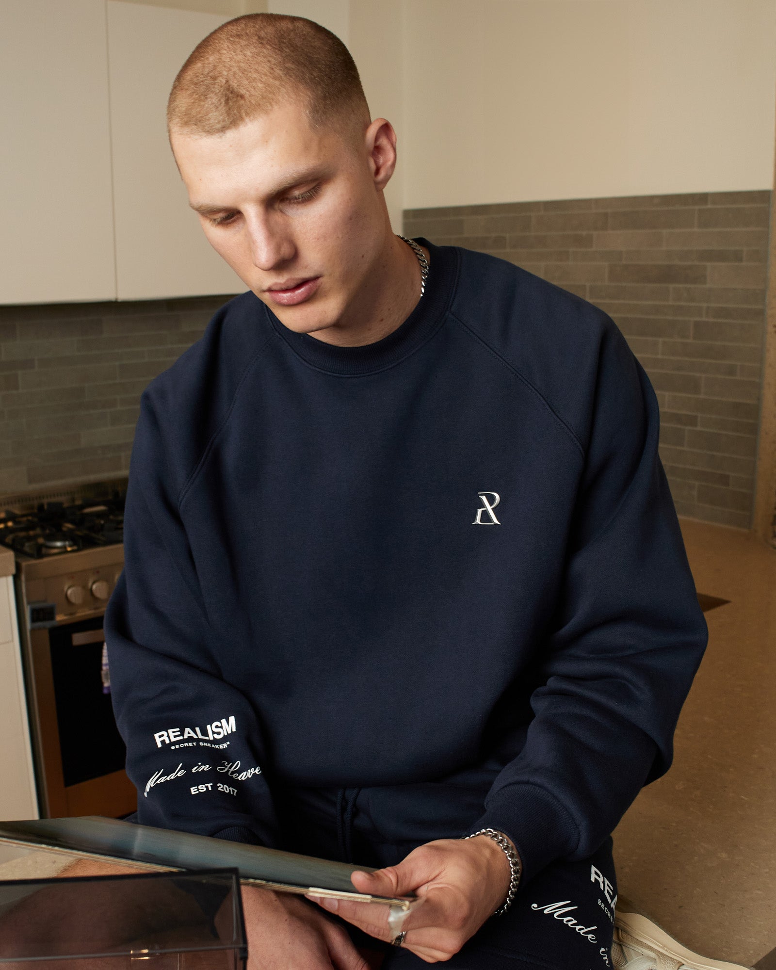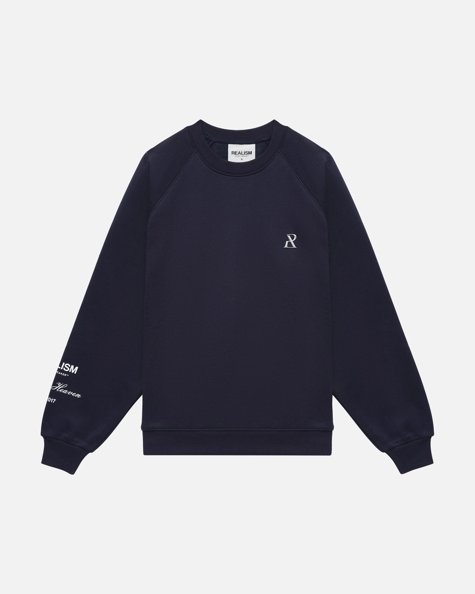 The classic crewneck silhouette is refreshed with a deluxe signature from our Radiant collection. Made with our signature comfy fleece in a oversized Royal Navy guise, this crewneck features metal accents including a custom "R" branded chest emblem and tag. A sleeve and centre back print ties together the design.