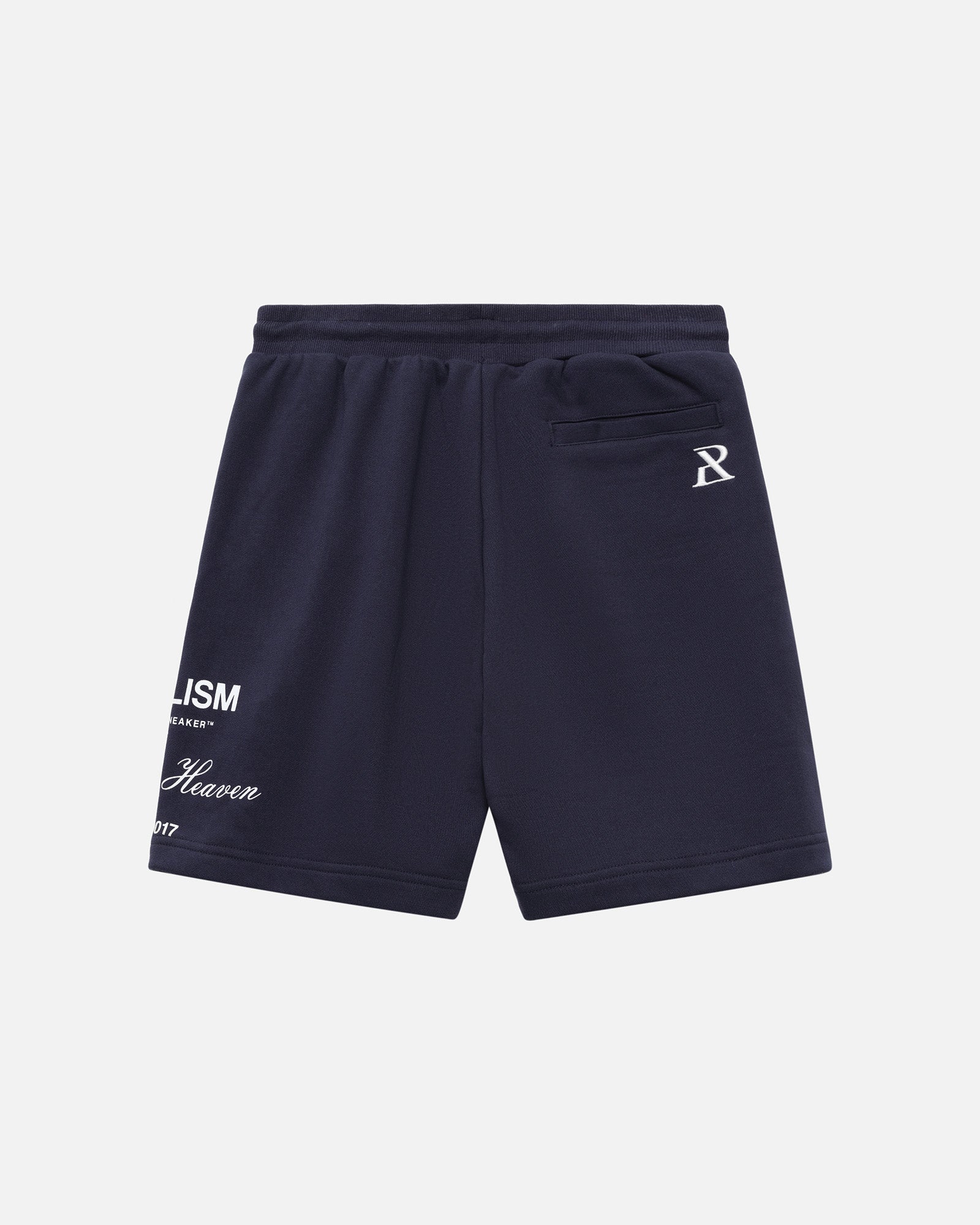 This lounge staple is refreshed with a deluxe signature from the Realism Radiant collection. Made with Realism's signature comfy fleece in a relaxed Royal Navy guise, these shorts feature metal accents including custom "R" branded drawstring openings, aglets & tag. An embroidered "R" on the back pocket and thigh print ties together a design that captures the essence of premium loungewear.