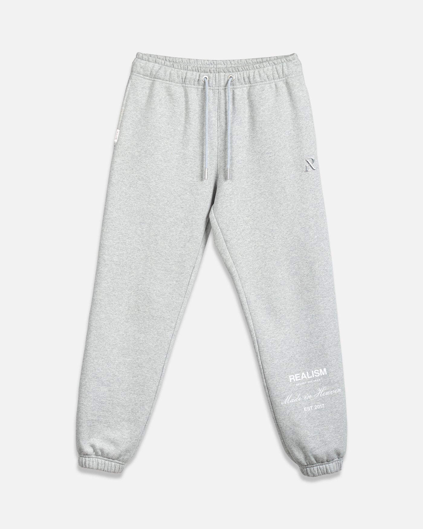 This classic silhouette is refreshed with a deluxe signature from the Realism Radiant collection. Made with Realism's signature comfy fleece in a relaxed Marle Grey guise, this sweatpant features metal accents including custom "R" branded drawstring openings & aglets, thigh emblem and tag. An embroidered "R" on the back pocket and shin print ties together a design that captures the essence of premium loungewear.