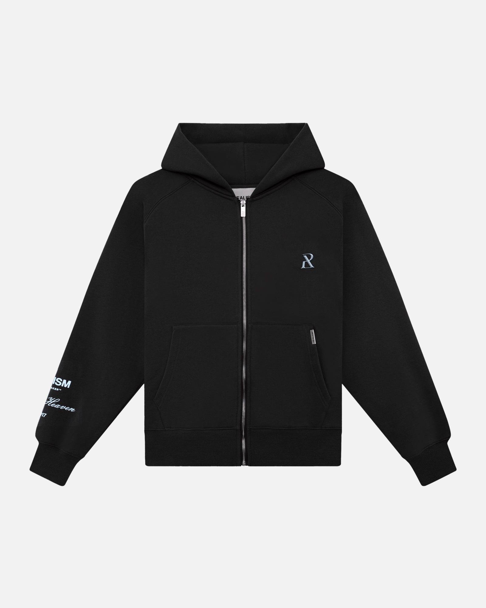 This staple zip hoodie is refreshed with a deluxe signature from the Realism Radiant collection. Made with Realism's signature comfy fleece in a oversized Storm guise, this zip hoodie features metal accents including custom "R" branded zips, chest emblem and tag. An embroidered "R" on the hood, silicon applique logo on the back and sleeve print ties together a design that captures the essence of premium loungewear.
