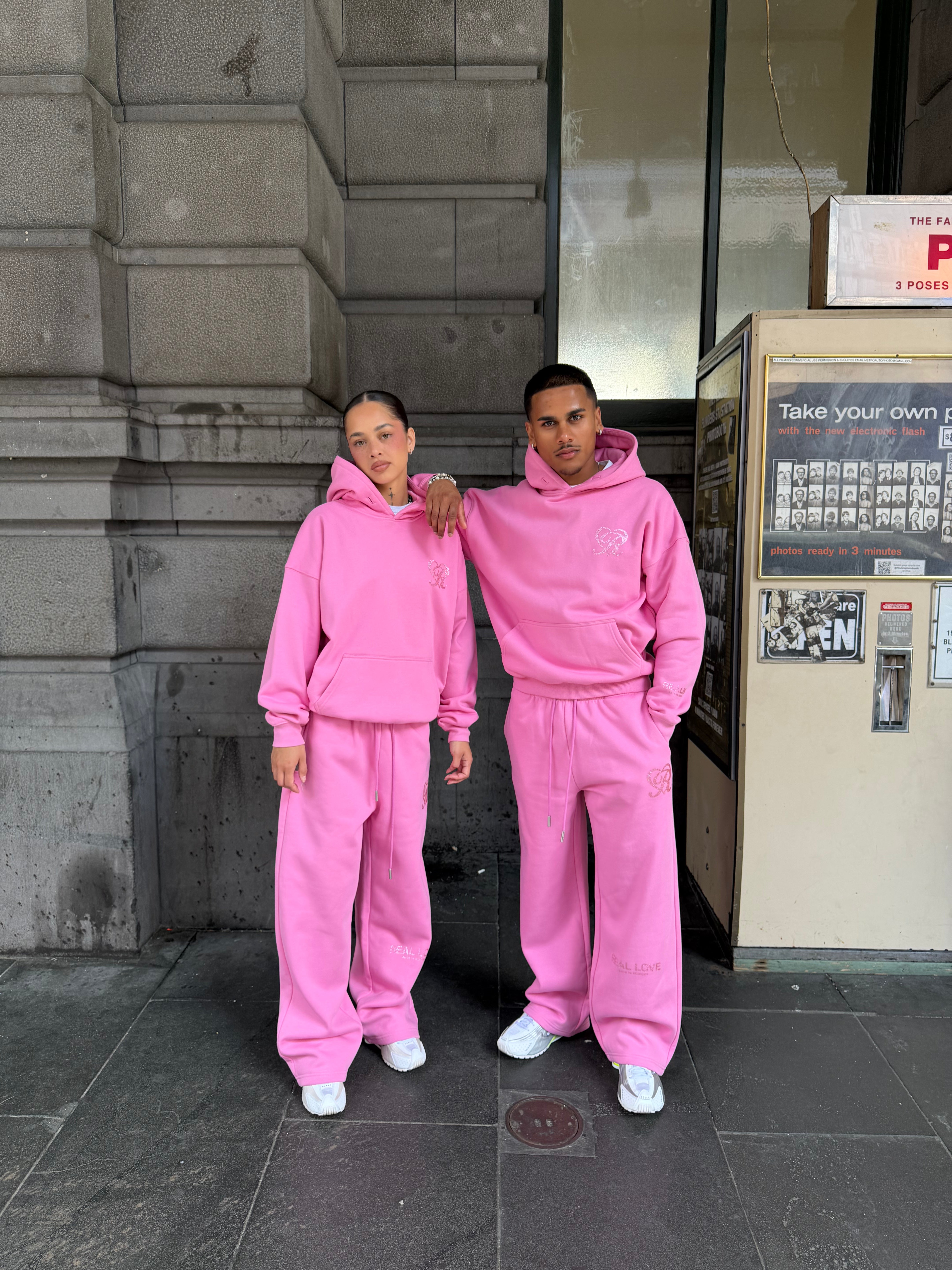 Created for the season of love, the REAL LOVE Hoodie is crafted from our signature 350 GSM fleece and finished with a shimmering glitter vinyl print that catches the light with every movement. An elevated essential made for Valentine’s Day and beyond.