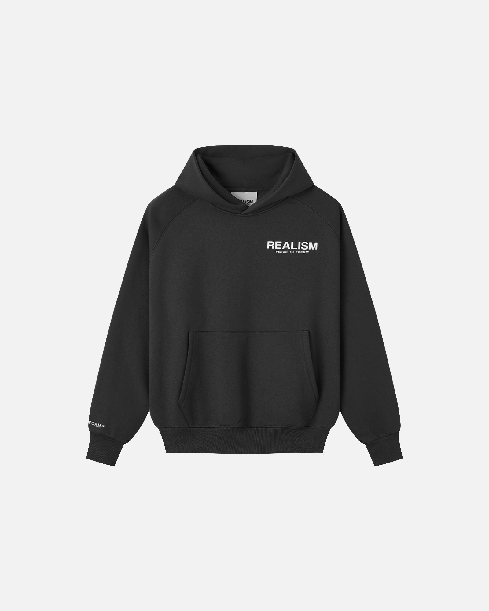 The ultimate hoodie. Premium, comfortable, and designed with purpose. Featuring Realism's signature 410 GSM fleece crafted into a raglan, oversized silhouette, this hoodie is accentuated with 3-dimensional silicone applique logos on the front and back. An embroidered "R" logo on the hood and a "Vison To Form" motif on the right sleeve complete this iconic design.