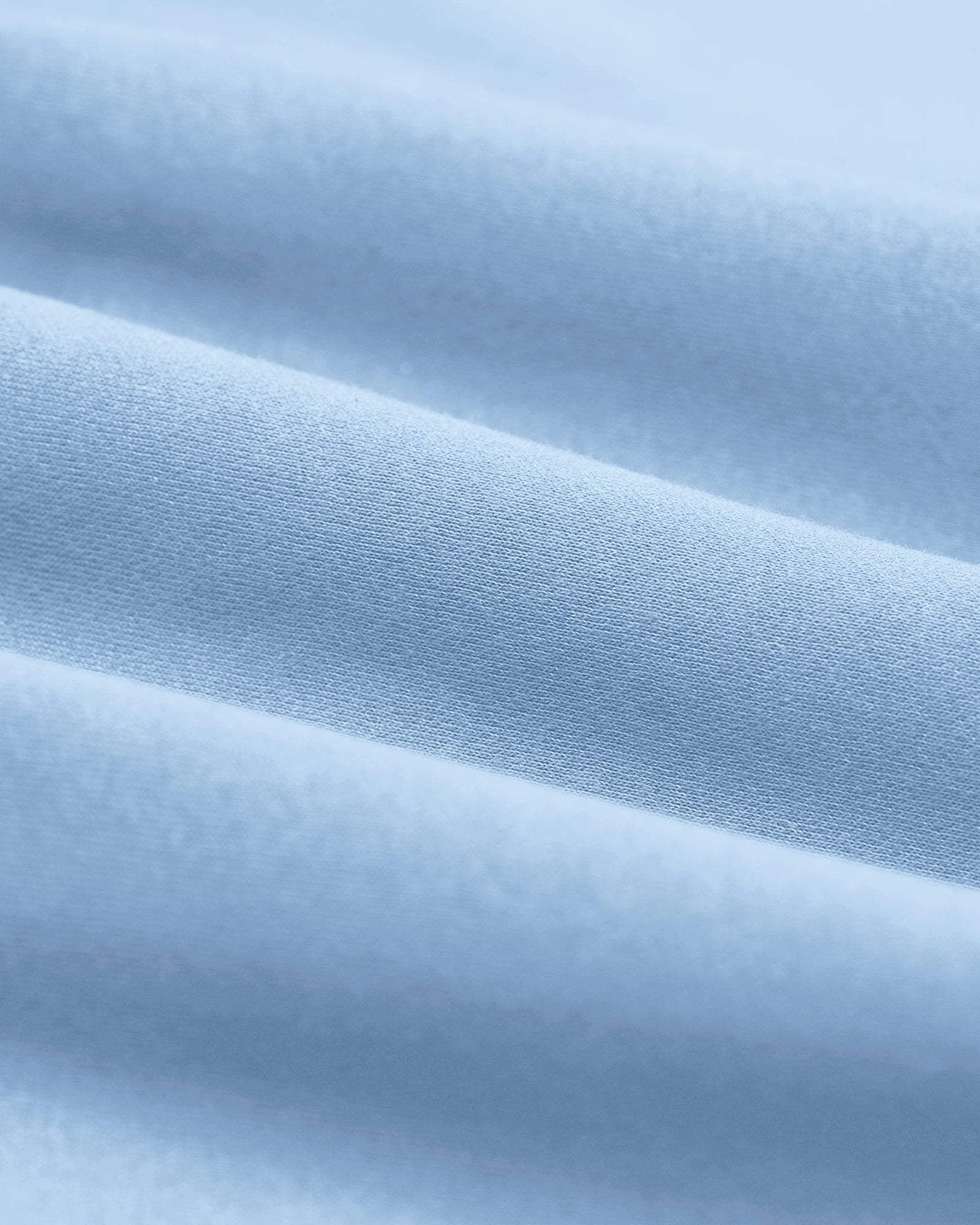 - Baby blue main fabric, metallic and grey silicone / printed / embroidery details