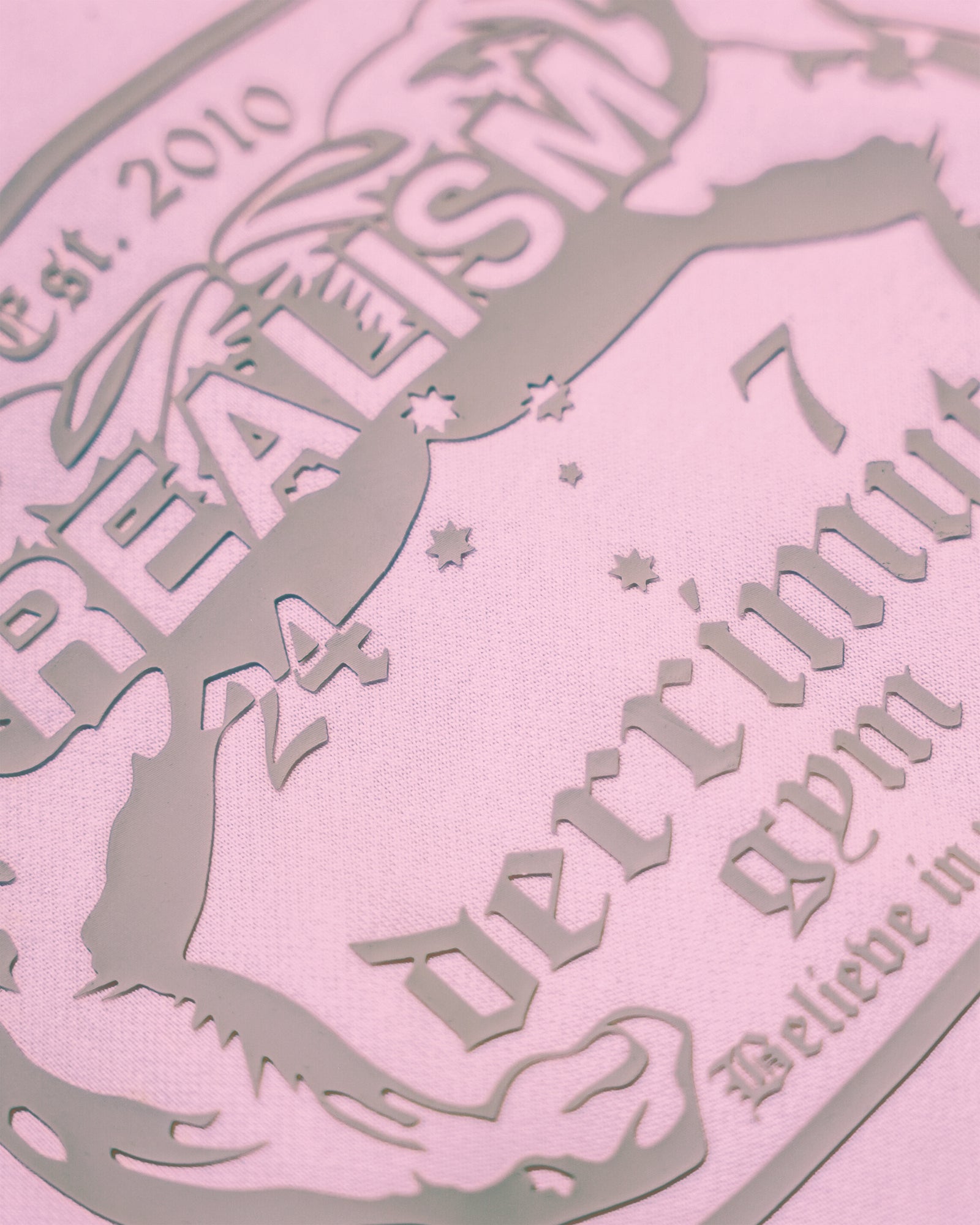 • Baby pink main fabric, metallic and grey silicone / printed / embroidery details