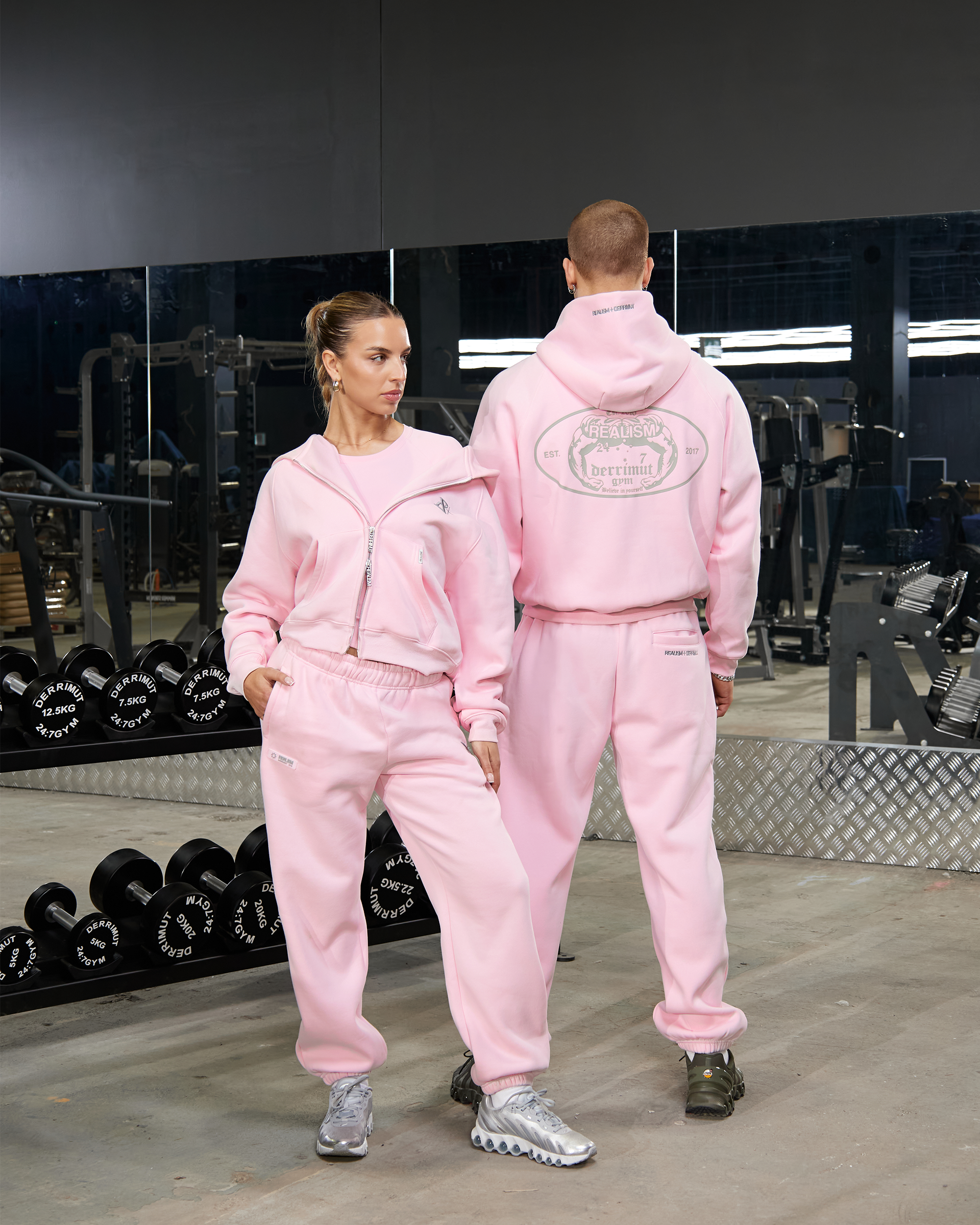 REALISM X DERRIMUT GYM OLD SCHOOL ECHO ZIP HOODIE BABY PINK