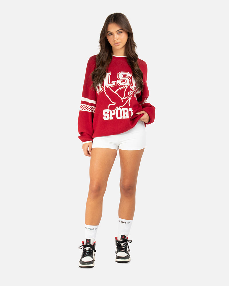 Embrace your inner varsity athlete with the Sporty Lines Knit Sweater. Made with a ultra comfy knit and contrast red and white ribbing, add a touch of sporty comfort to your outifts.