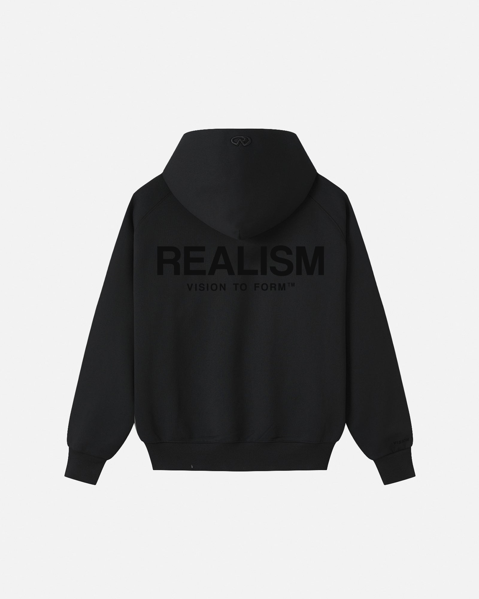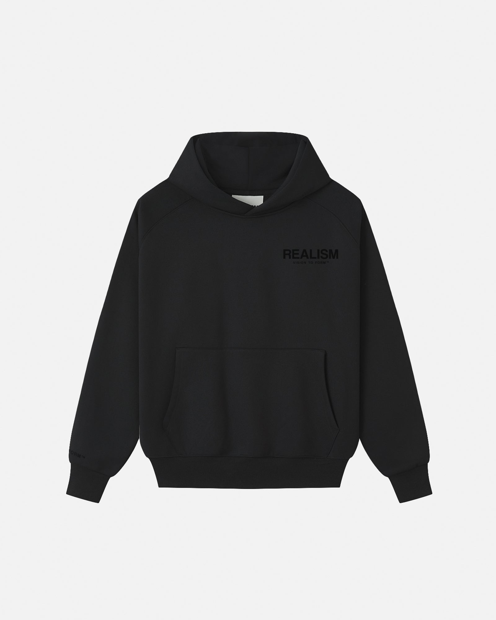 The ultimate hoodie. Premium, comfortable, and designed with purpose. Featuring Realism's top grade 410gsm fleece crafted into a raglan, oversized silhouette, this hoodie is accentuated with flock applique logos on the front and back. An embroidered "R" logo on the hood and a "Vision to Form" motif on the right sleeve complete this iconic design.