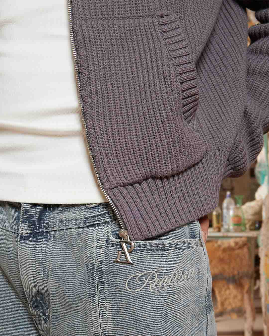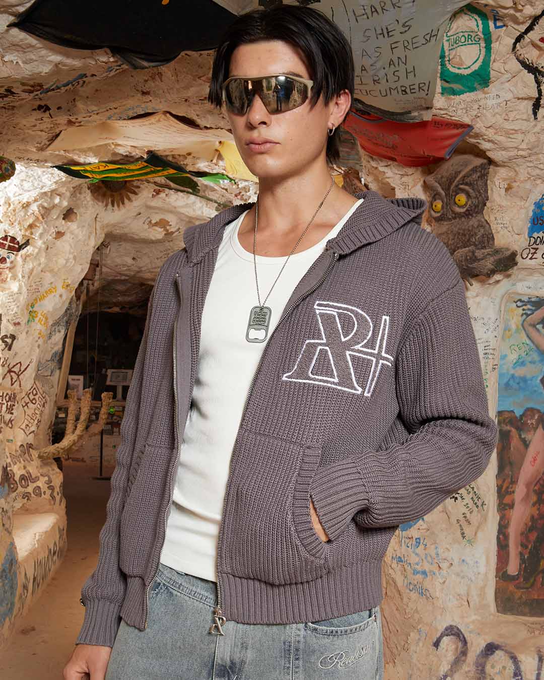 VIVANT KNIT ZIP HOODIE CHARCOAL